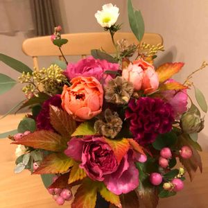 こんにちは🌞 昨日から一気に気温が低く 何を着ていいか迷っています。 明日職場に飾るアレンジできました💕