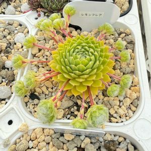 もけもけ系では珍しい黄色系の センペルビウム・レモンフレアさん😻💛🧡🤍💚 去年の秋(夏が中々終わらなかった💨)に1頭しか無いのを3分の1くらいに縮めてしまい 子株ちゃんも無く… 今年度は再販も無さそうで半分諦めておりましたが(今見たら再販有りました🙇💦) 復活してくれました😺💝 黄色系のセンペルさんは ゴールドナゲットさん以外 殆どが黄土色になるので明るい黄色系は良いアクセントになりますね🧡
