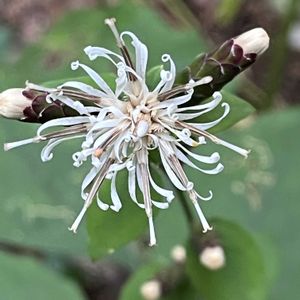 3年待ってやっとカシワバハグマのお花らしい花に出会えました クリンクリンが可愛い 三姉妹の中では1番大ぶり キク科コウヤボウキ属 そのコウヤボウキがまだ蕾 今年はオケラ、カシワバハグマ コウヤボウキと三姉妹に会えて ラッキーでした