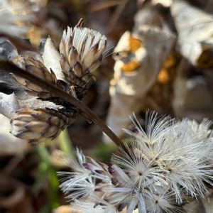 12月21日 散歩道のカシワバハグマは冠毛になっていました。 風に乗って綿毛が飛んでいってしまった後がまた花のようです♡ 渋い色と形が冬の野に似合ってますね♪