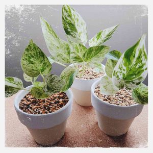 雨の日には観葉植物を愛でます🪴 ポトスマーブルの葉の白さに惹かれてお迎えしたものです この鉢は100均で見つけました🪙