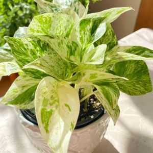昨年お迎えしたポトスマーブル いい感じに成長してきました♪ 最初は白×グリーンでしたが、黄緑っぽくなってきました。 普段は窓際に置いていますが、光が足りないのかな?