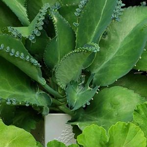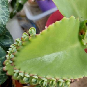 🪴🌿コダカラソウ(子宝草)🌿 雨の当たらない明るい場所に置いた子宝草🌿子供達がたくさんできていました😍 やがてこの子達も自然に落ちて根を生やして増えていくのかな🪴 楽しみです❣️ 🌿🌿多肉植物🪴ベンケイソウ科の常緑多年草🌿