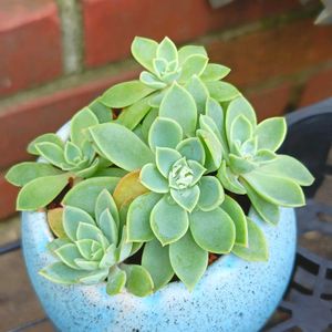 のわの葉挿しからミニ丼チャレンジ2025 ミニ葉挿し丼を作るのが目標です! 2025年7月は4巡目 ⑯パンジー 夏はパンジーの突き抜けた明るい 黄みどり色が映えます🌱 薄葉なのに凄く頑張り屋さんですね😄
