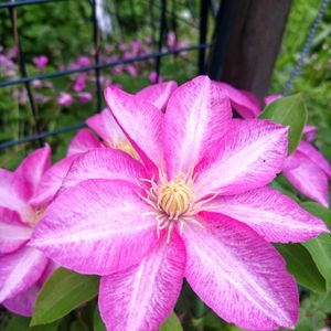 おはようございます🎵 クレマチス 星のタンゴ💃 フォロワーさんの所で見かけて😅やっぱ一緒だった🤭ウレシイ🩷 昨年より遅い開花ですが発色が綺麗でお気に入りです♥️ 花弁の中央がかすれた白が可愛いデス✨