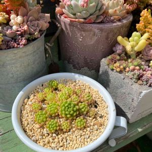 おはようございます☀ {{{{(+ω+)}}}}寒ううぅ〜 🍀セダム属 ウインクレリー カクトロコ産、1号鉢シリーズ ランナー伸ばしてかわゆい😍 うぶ毛があってベタベタで 土、ホコリ取れない😅 1号鉢あるある、、、 レジに持って行くまでに倒れる →レジの人倒す →車移動中、倒れる😱 ➡️結果土まみれ😭 セダムだしモリモリ増えてくれるかなぁヾ(〃^∇︎^)ノ
