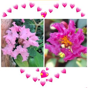 ①②サルスベリ ぺチートサンシャイン プラム開花🙌 ⇐💗は元々あったサルスベリ ⇒去年買い越冬し 開花🌼 ③アポロン🌻大きくなりました😆 ④アポロン🌻が👀 笑顔に見える私 ⑤ポーチュラカ キレイに咲き始めました 🏷️コラージュして遊ぼ♡🏷️コラージュ仲間達 参加します