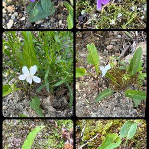 4月24日 花友さんからのお誘い オオバキスミレが写真のように 咲いているよ教えて頂き一緒に見に行って来ました 久しぶりの山登りです 先日の雨で足場が少し悪く 慎重に歩きながらのスミレ探し ① 早速 ナガハシスミレ タチツボスミレが😍 ② 謎スミレさん ③ お目当てのオオバキスミレの群生 天気がイマイチだったので①のようには咲いていませんでしたが見る事が出来たので満足😁 近くには ニョイスミレも❣️ 続く