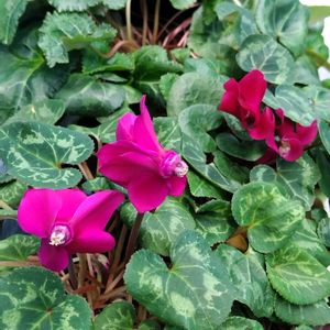 シクラメン❇️💗❇️ 一ヶ月程前に室内から玄関前に移動し、その後霜の心配も無くなっちゃったので夏越し用のスペースに移動させてから一週間経過しました😄 最近益々元気になって来たように感じます🎶