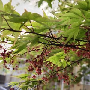 イロハモミジ🌿🍁🌸💮🍁🌿 新緑の葉っぱに小さな赤いお花が可愛らしい❇️❇️💕 お散歩道で🤗