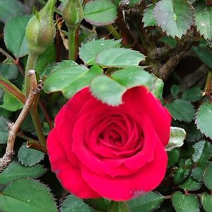 今日は☔です…。 暑い日が続いていたのでお花達にとっては恵みの雨ですね🤗 私も庭の水やりしなくて済むからありがたいです🤭 今日のお花バラ(赤)🌹 ちょうど昨日、鉢植えの真っ赤なミニ薔薇が開花したところでした😄