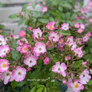 カバー写真にもしているバラ バレリーナ💗🌿 今年も沢山咲いてくれました😅 ①縁取りが濃いピンク色 ②こぼれ種で発芽し、室外機の前でもこんなに大きくなりました😅 ③冬にしっかり剪定をした親株は花色が濃くて長く咲いてくれています🥰