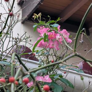 🏷️木曜日は 桃色に 参加させて頂きます🤗 ①②③④実家の庭にて📱 ⑤通勤途中 ご近所さんのミニバラ お名前は わからないそーです🤗