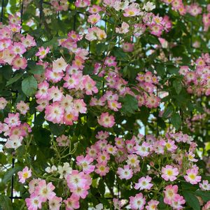イングリッシュガーデンにて撮影 バラ バレリーナちゃん🩰 可愛らしいピンクの花に中心が白の花。 ひとつひとつの花は小さいものの、それが房となって一斉に開花。 🏷️乙女色クラブに参加しまーす💕