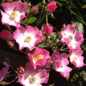 【バラ】 『つるバラ バレリーナ』 可愛いなぁ〜💖 一重のバラが可愛いなぁ 初心者向けのバラが欲しいなぁ とお迎えした子☺️ 昨年癌腫になり 木酢液漬けの治療をし… 今年は復活してくれたようです🥰 沢山お花を付けてくれました😊💕 花形4cmぐらいです☺️