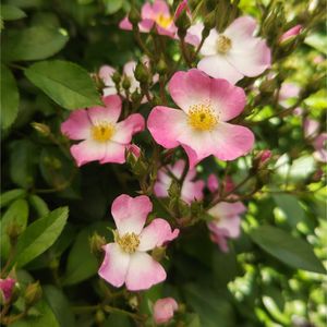 【薔薇・バレリーナ】🌿🥀🌿🐝 ᥫᩣ ② ᥫᩣ♡⃛ ナチュラルガーデンの「バレリーナ」です。 青空の下、風の中を踊ってるかのように可愛らしいお花。我が家の薔薇たちも今までで一番美しく開花(8年目)OK!‥念願だったバレリーナの裸苗注文しました。花後のローズヒップも可愛らしいそう。楽しみ🎶- ·̫ -💞
