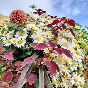 ローダンセマム レトロクラッカーを見つけましたのでこのお花で寄せ植えを作りたいと思いました💛🤍 イエローのリナリアとビオラを合わせ、アクセントにブルーのネモフィラを💙 リーフは待機苗のロータス ブリムストーンを使いました。 同じイエロー系でも少しトーンが違いましたが使っちゃいました😅 おまけ❣️ 完成した寄せ植えを撮っていたら角から地域猫のソックス君 この子はお庭や道路に💩するのでいつも追い払ってしまいますが、顔を合わせても慌てることも無く私の顔を見て悠々と去っていきました😓 う〜ん、貫禄あるな❣️