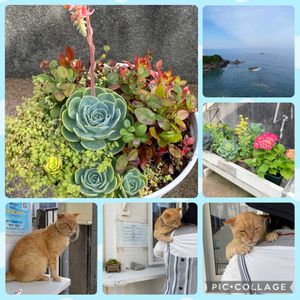 こんばんは〜☺️ 大王埼灯台 2投目です。 1枚目 絵描きさんのいる公園に 神社があり隣に赤いガチャがありました。 売り上げの一部を「しまねこプロジェクト」に寄付します。と、書かれたおみくじガチャでした。 私も運試しに挑戦してみたら 中には上段⬅️の左側のネコの置物と 小さいホワイトパールとおみくじが入っていました。 下段⬅️は灯台から南側です。 手前左側が絵描きさんの像がある公園です。 灯台は22.5mの高さがあるので 遥か彼方の島々が見えました。 2枚目 灯台の下にいる地域ネコさん達🐱 暖かい所でのんびり🐱🎶💓 お花も気持ちよさそうです。 3枚目 多肉のミニ寄せ植えの中にも 招き猫さんがいました🐱 4枚目 素敵な多肉の寄せ植え💖🎶😃 5枚目 🌸可愛いけど名前は分かりません🙏💦 公園と灯台の写真が混ざって 分かりくいかも🙏💦 🏷️1日遅れてめんごめんご 🏷️ニャンニャン祭りに参加させて 下さい。 追記 5枚目のピンクのお花の名前を 「和ちゃんやで」さんより アリウム ロゼウムと教えて頂きました☺️。 ありがとうございました🙏😃🎶。