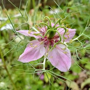 ニゲラ🌿🩷 ピンク色が濃くなってきて嬉しい~(*>ᴗ<*) 八重咲きも零れ種で咲いてきました🩷🎶 やっぱり蕊がエエ感じ・:*:・(*˘︶˘*).。*🩷・:*:・ 🏷しあわせ運べるように 🏷花咲く乙女たち♡