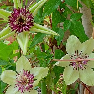 クレマチス リトルマーメイド🩷 26日に開きかけだったのが全開し🩷もう一つ咲いてます🩷🩷 蕊に«٩(*´ ꒳ `*)۶»ワクワク🎶 蕊萌え❣️ 🏷しあわせ運べるように 🏷花咲く乙女たち♡