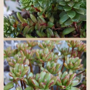 🏷「つぶつぶの日」 参加します🎶🎶 リトルゼム セダム属 と 小人の祭り アエオニウム属 どちらも「つぶつぶ」感‥😊 紅葉🍁も少し‥😊