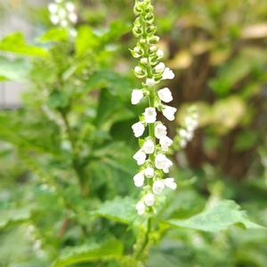 紫蘇の花💚🤍💚 葉っぱ🌿の虫食いに負けず😚 来年のために実をつけてね~😆