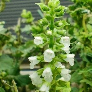青紫蘇の花が咲いています 白い小さな花がたくさんついています