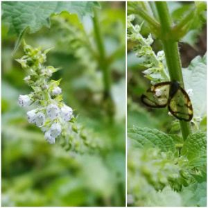 青紫蘇にも可愛い花が咲くんです🤍 紫蘇は、葉も実も美味しいですが、花も食卓に飾られたり、天ぷらにしたり、全部捨てるとこ無し とても便利な東洋のハーブですね❣️💚