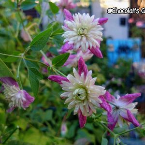 ①種から育てた木立性クレマチス とにかくちっちゃいお花💗 ②バレリーナ ③品種不明 ④⑤こちらも品種不明の咲き初めと開いてから