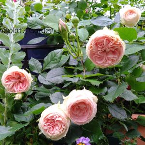 続々開花しています。50を超えたのでナンバリングはやめました。 ①バイランド タンタウのバラです。サーモンピンク、ロゼット咲き。 可愛い〜💕 ②ブラックティー 上手く咲かせらせたことがない😅 ③ワイルドブルーヨンダー 華やかな濃いピンクに黄色蕊、フリルの花弁が豪華なバラ ④真っ赤なミニバラ お花自体はミニじゃないの。ミニバラなのに丈夫でかなり放置してるのに毎年たくさん咲く❤