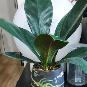 こちらも昨日買う予定は していなかったけど 大きな杓文字のような葉が可愛くて お迎えしました💜💙 この鉢も一目惚れ😌🌸💕