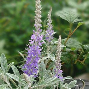 大好きなお花 今年も咲いてくれました シルバーリーフに淡いブルーのトウテイラン( 洞庭藍 ) オオバコ科 ルリトラノオ属 ベロニカみたいに穂のような形のお花です