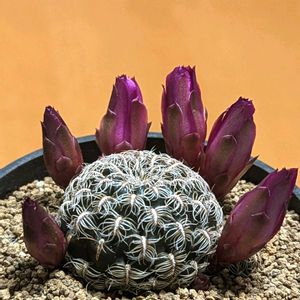 新しい仲間が増えました この蕾を見たらもう釘付け😳 大きい蕾‼️しかも根元に付いている この姿 うちには無いサボなのでお持ち帰りです🤗 棘もゾクゾクっとする美しさ これまた、好み😄 そして今朝全開です 思いのほか花大きいです 色、形ステキです💕 この子は子を沢山ふくそうです それも楽しみ😁 あと何日咲き続けるのかなぁ〜 W 3.5cm .