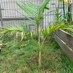 3つ目 Archontophoenix cunninghamiana var. Illawarra(イラワラキングパーム) 葉傷みあり 2本植え×6鉢、計12株セットです。 トレーの整理が目的の出品なのでバラ売りはできません😅 少々葉傷みありますが生育には支障ないと思います。