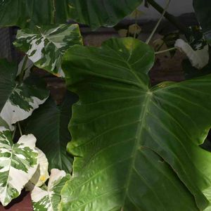 先日行った掛川花鳥園 花より鳥よりも気になったのは、地植えで生えてた斑入りのクワズイモ🌟