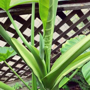 クワズイモたぶん3年物です。冬は室内、夏はベランダですが、夏は害虫が着くので葉っぱを1枚ずつ洗ってあげます😌そういえばこの子も100均出身でした👺