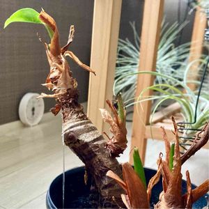 以前投稿した凹んできたクワズイモがますます凹んで曲がってきた。 子株はもぎ取って挿し木にすれば生き残りそうだけど、最期どうなるのか興味があるからこのまま突き進もう。 壁|ω•`๑) 。oO(久しぶりに突然じゃなくて、じわじわダメになる多肉だわ)