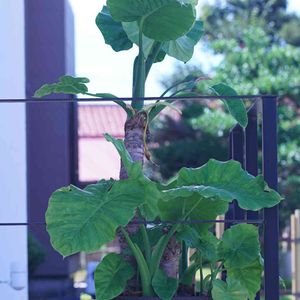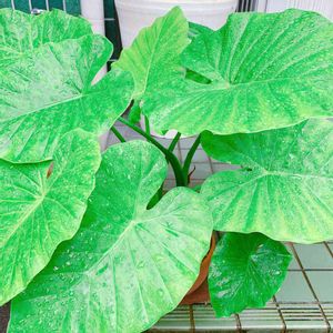 クワズイモがどんどん🤔どんどん大きくなるから鉢大きいのにして バケツにいれてみた! これ以上にまだ大きくなるのかしら💦