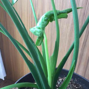 クワズイモ🌱 1度だけ植え替えたけど、もう10年近くベランダで、放ったらかし(笑) 2、3日前から、新芽と思っていたけど、何だか様子がおかしい(笑) 花芽みたい✨✨