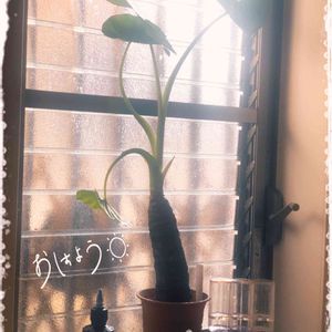 クワズイモ 日に日に 成長してる 葉っぱがもう少しで 開きそう^_^
