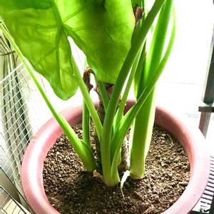 クワズイモ♡♡♡次々新しい葉でる🥺 人の顔より大きい葉っぱが魅力的〜🤭🌱 イモの部分太くしたいんやけど、なかなかならへん🤔。。