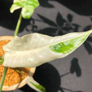 錦の日①斑入りクワズイモ 来た時は右の緑の葉だけだったのだけどね。 2枚目はほんの少し緑が、3枚目は全斑になりましたとさ。 芋ができるのは何年後かなー(๑°⌓︎°๑)