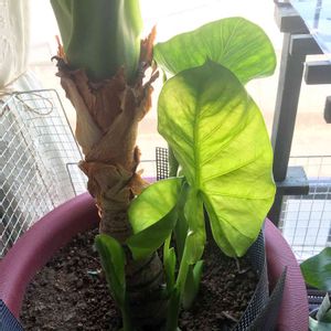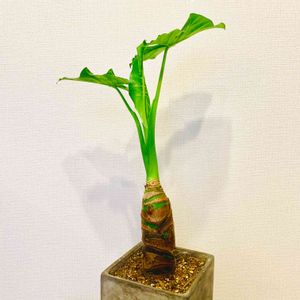 近所の植木屋さんにいた元気なクワズイモさんをお迎えしました 写真よりずっとたくましい感じで、見てるだけで元気が出ます 新芽もチラッと見えてるので成長が楽しみだなあ