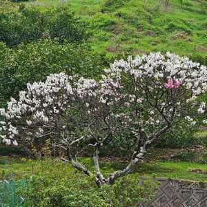 紅白の モモの木 林道の一本のモモの木 赤い花が一部混じってます モザイク現象ですね🎵 モザイク;1つの個体のなかで 遺伝的に異なる細胞が混在することをいう これと間違いやすいのがキメラです キメラ;遺伝的に異なる別の個体が 同一の個体内に混じっている状態 ****** 2025.4.20記述 この投稿から一年後 伐採されたこの木の株元にひこばえが生じて 赤白の花を咲かせました このときの花の再確認で サクラてはなく「モモ」であることが判明しました ここに訂正しお詫びいたします
