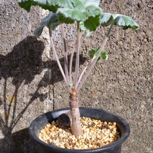 ペラゴニウム・ミラビレ 枝挿し 小枝 GWで愛知に帰るついでに ガーデンセンター不二に寄ったら・・・ なんか小さいのがついてきました。 根っこ出てるんだろか?