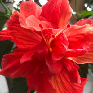 ❤️ᩚ真っ赤な火曜日。❣️ ベランダで朝。ハイビスカス🌺𓈒𓏸が咲いてくれました。 八重で可愛いです。❤️❤️ᩚ❣️❤️❤️ᩚ❣️