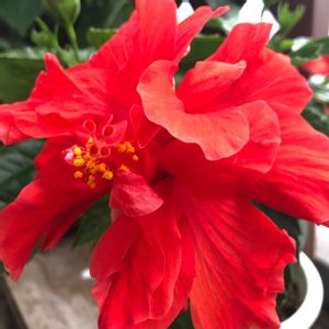 ❤️ᩚ真っ赤な火曜日❤️ོ ハイビスカス八重が、咲いて きました。 ❤️ᩚ❤️❣️❤️ོ