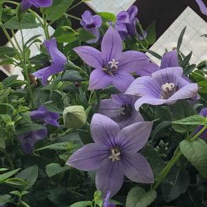 桔梗さん。ハイビスカスさん。 ベランダで、 ♬ ⋆꙳𓄸 ♪ ( ง*ˊᗜˋ*)ว ♪ 𓄸꙳⋆ ︎ ♬(*˙︶˙*) ノ"💕💕ヾ(@⌒ー⌒@)ノ 🏷️彩月(いろどりづき)青い花2025。 1.桔梗さん。 2.ハイビスカス。ケイト。 🏷️2のつく日は斑入りの日。 3.ヒポエステス。