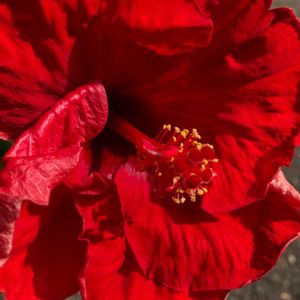 ❤️ོ真っ赤な火曜日 ❤️ོ今日のハイビスカス🌺 ハイビスカス。赤八重。 ポトリと落ちないで、咲いてくれました。(〃^∇^)o_彡☆ ありがとう!(´▽`)😊😊😊
