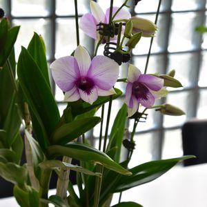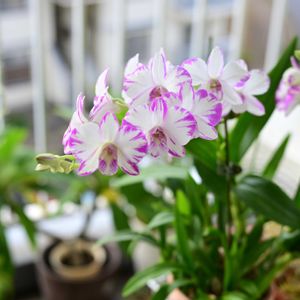 デンファレ 花すみれさん😊 以前、森水木のラン屋さんでオマケでいただいたラン。完全放置でベランダで育てていましたが、花芽を確認したので一旦室内に取り込み!😅💦🌿